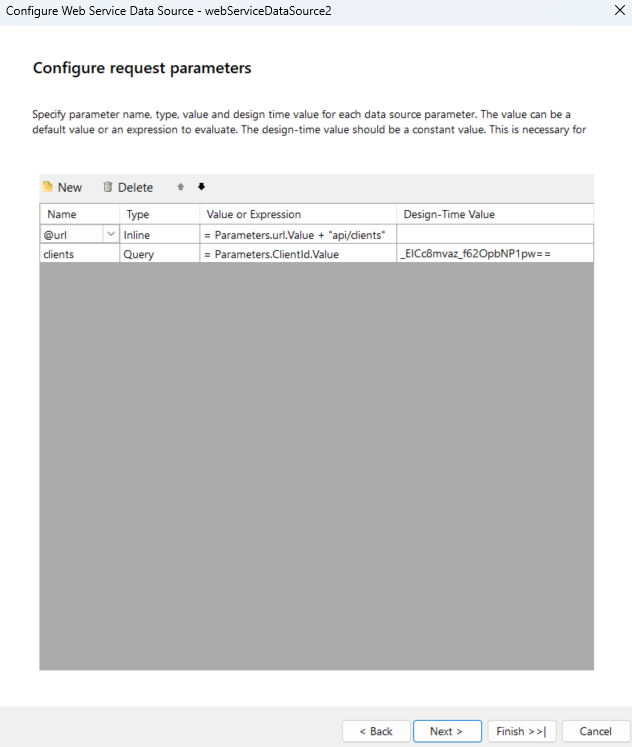 Scenario: My API domain is https://abcapi.com, which is used in every report under the "Configure Data Retrieval" window of the Web Service Data Source.