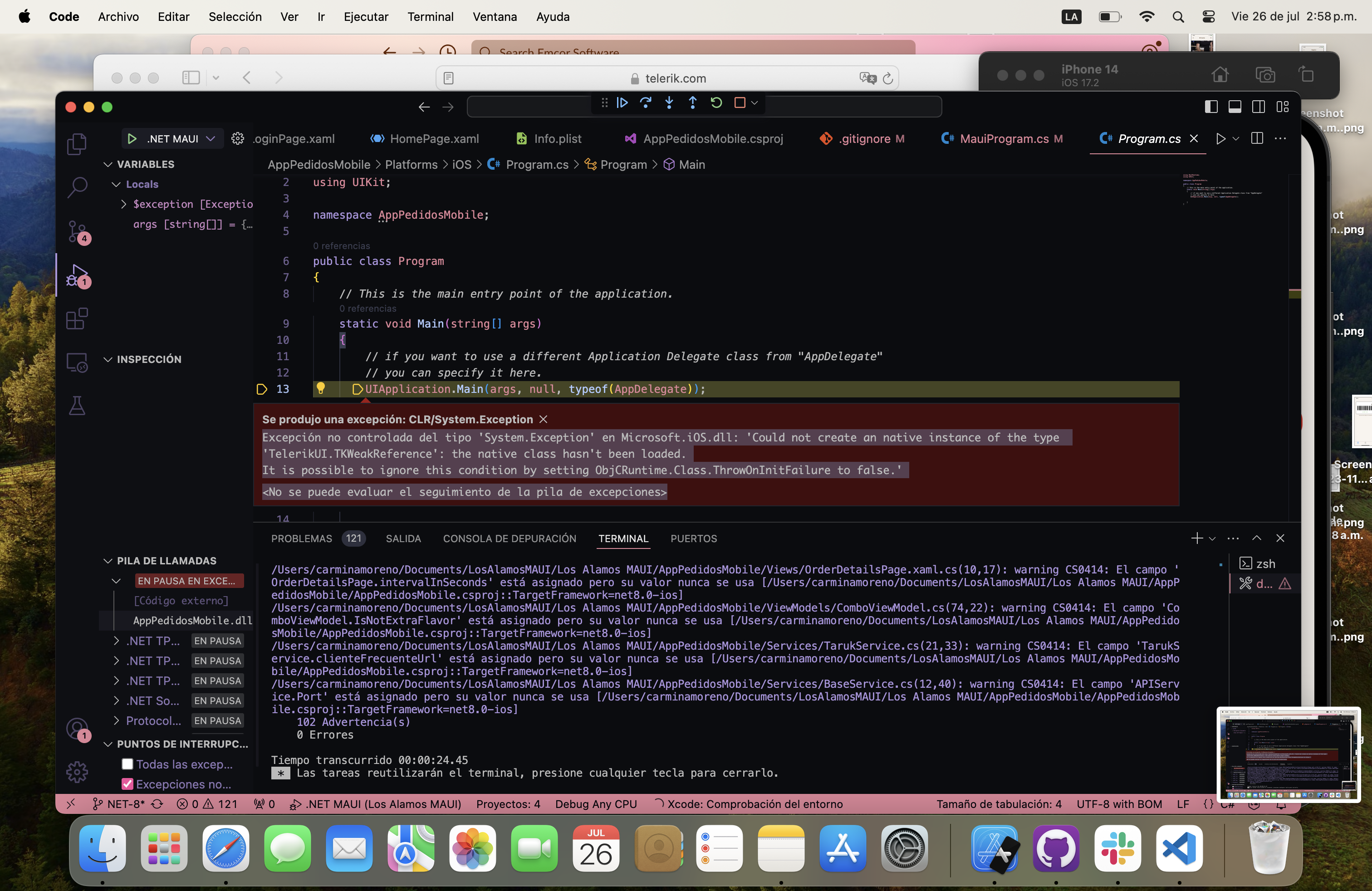 Hi recently started to work my .net maui apps in NET - 8 on iOs, but i having a problem with telerik i can't even load any view with a telerik component, instead I got this error: