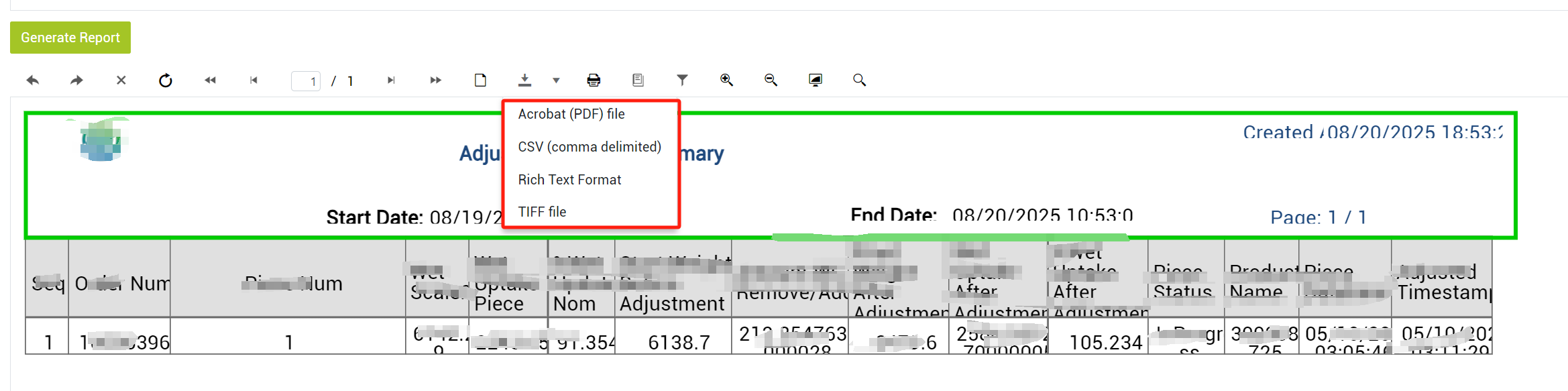 <?xml version="1.0" encoding="utf-8"?> <Report Width="29cm" Name="AdjustmentPiecesSummary" Zoom="1.5" SnapGridSize="0.1cm" xmlns="http://schemas.telerik.com/reporting/2021/2.0"> <Style> <Font Name="Arial Unicode MS" /> </Style> <DataSources> <SqlDataSource QueryDesignerState="null" ParameterValues="{"@StartDateTime":"'2024-03-14 15:20:19.000'","@EndDateTime":"'2024-03-16 15:20:19.000'"}" ConnectionString="= Parameters.PFDSConnectionString.Value" ProviderName="System.Data.SqlClient" SelectCommand="[AdjustmentManager].[pr_AdjustmentManager_LoadPiecesSummary]" SelectCommandType="StoredProcedure" CommandTimeout="90" Name="pr_AdjustmentManager_LoadPiecesSummary "> <Parameters> <SqlDataSourceParameter DbType="DateTime" Name="@StartDateTime"> <Value> <String>= Parameters.startDateTime.Value</String> </Value> </SqlDataSourceParameter> <SqlDataSourceParameter DbType="DateTime" Name="@EndDateTime"> <Value> <String>= Parameters.endDateTime.Value</String> </Value> </SqlDataSourceParameter> </Parameters> </SqlDataSource> </DataSources> <Items> <PageHeaderSection Height="2.4cm" Name="pageHeaderSection1"> <Style> <BorderStyle Default="Solid" /> <BorderColor Default="0, 204, 0" /> <BorderWidth Default="2pt" /> </Style> <Items> <TextBox Width="4.277in" Height="0.354in" Left="8.2cm" Top="0.5cm" Value="Adjustment Pieces Summary" Name="adjustmentPiecesSummaryTitle"> <Style Color="31, 73, 125" TextAlign="Center"> <Font Size="22pt" Bold="True" /> </Style> </TextBox> <PictureBox Image="iVBORw0KGgoAAAANSUhEUgAAACUAAAAlCAIAAABK/LdUAAAABGdBTUEAALGPC/xhBQAAAAlwSFlzAAAOvAAADrwBlbxySQAAC0FJREFUWEe9lXlcU1cWxy8oiNa21ulmHVtb/bQ6TmuXkVqdjlpCUAZRCyqKKyjuBgKETUkgEPYA2UmALGTf94RdKAgiiyCCKIIoigubsth1mPtIikt1nD/mM7/P++fdd8753nPuueeBiZfpVt8tQ5WGZIrGFvoftG4IsLgdsLgFWd2Ci70J1gNsa9rZxsrR0RG79cv0n3i9t3vzizknDAE7jZ5+JvcdJnd/s/tui/teK2q/FYWArW5BhaiThd4kY0jRWePY+Jjd88V6Pu+XX34x15iD9Ae8DOiNBvQmg7uffuNh7W6c+jheFY7XhIVrDx01bttnWQ/Z+yxugYWoI0Weaabojs52e4gX6Dm8kdERehHzn/pNKC0arfMI0OxjmOkNrQ2DQ4M///zzvyb16NGjnt6eohprihF/0Pz9Lgtqtwm1z4oKNe+qqC+DBvZYf9CzvNGx0URz2hqd59816I2arUwLq+9u3/CD4drmWkFRAVlPTtOmMkw0U5Wxs/sqtIehGy/VE83RO03r/YwofzPqiNm3uNZqi/ZHPcWDZaQV5X6t8VqhQm9XB1Q3nYU5icol+zWHUXqvdQYPN4OHu9EDbfLw0KP9tNvi9ITzF89DR1gSXmmev3mTjwG1zYg6ZNxe13LOFvMZPcUrrCtbqdjxqczbV3G4rbO9vavjiC58pW49Wu0Tqopim3PlpQphkShZlxqgPojWbUDp0b66rblFueOPxn/77TdZhXSr0dtbh9picA/RH+67c9se9wk95t3rv79Zhlsk3LZKElDTUnfxyqXNqmN/U/hEqomtVy79+OOPMIkHDx/AI4TGQ8ND2irdHt2BNVq0u86TbMqESFgeZjHDS7/BU+u+0eDBsFDhJmzBp/SYl1uqeZcf8B5/L9Us7Lt3Z4s84lPxLk6h+MHDh4XnykNU8VukhzdJA/cpMBQzu+tGN3Tp7Ll2XB+6WoNep/XML+bB6LD+Jw0YpNG07n7a7R3XOmzBp2TnDT0YXieMeyU3aBU/qu/eXYI+911BQJqBOzA0eEpH+4t4z1Kx3zfCPSskO5fJtnwq37RZGVRWXwEdu29279QGfa1Gr9f4NlxqhCulDeVo/cZ1OrSb0YNiok6Gfyw7r7S+9g126Ez2iUyj9GpP92JemDs/9v7gAF6f97YgcLsYX1h7pvP6teb2i5mmvK/F+5eIfb6TBTa2XYD9qT5rcFPv8FT4kyxkVYWWVZyHMeDwSiJBRSRbs2DesjKFpdoKu+/2ndt2XpxWPJ0e/h4ruvXqFUahZiYnuKDUVN92cR43ZFNBwt3792xmNgkrdV9JDm0owBDNTIyS9L0iOMuSC4dRVXPNGo3fl2pPnJpgO7lbd277GnbDgq/RrHfXeiXokxAePGcfHt2RErOKnQIL6FdAnc+K6ey5TtSKXmVjrbU/TFIm4B1v6WhjWBU+UlKCPn9gcLC+rXmp6MAHQv+TsiSY6Mjo6DYldpl0i7fkUP/gAHSBzXVcF7FC5eGqdF+pct+pCUR4ww8erGBmgsw4v3wGPEhXdtpXzKTB4aEdAuo8xqkr3V09vTdzzZpNHNICVqgL+9jM3GOhMgZ0vD/Q/40wYi53v5cgemxsDCKPqpI+EvqtFO7r6EKmARTekLFc7vW5bMMX8vVrNT4I715//zJqFkgnHRdwIfszRsYqZsbo2Ji/gPUJO/mAMGcpjeBMxU2nhznRsM60YGdWcJyKDx1hMVz5p2flHvqOewoOJrgSpqa9zd+7hB94ob0VoU1MJBtzlkh8l4o2LxN7L5d6/87LooKU1GM8Huz+L2jZSykZxuqqCKW06XK7D5/lkI13yIxxzIxyzIqYRsG9yYypaETGysWrHfM5kTNYJzZwE2C1YX5BsuzZeQcX5B+d4iUYOO8X+H/I375IsPXjAl+E1z8w+FkWA5DIW1mc8UePdvH4uwX8RZTsZVnkvrt32zo7V7OpDuR4WHCQRZhLJabpFLZbTzaqnOk4J0ZYmJQDXyFygyDZJefYQg62o6sToU1MnNJxYMHfytvzbv6u+dydCG98/NFaSh4gUpaTmSSFBiuSwWL65XEdktMjhCLYTb19fUyj4QgvL1IsKDt/Dq5ArwuX2z9mJjlkxbxGO11YexauXLvRs4iDd2KEuHIIg0NDcAV2aYAsexbn8Cvsg69yAt/MP4DwkDrkSeaTciKlmj+n5CxOpvfe7qtsbPpTKm0WKTNeIodFhmZPqu5iyypGNkiPB+Q433wGbBa4yCkyOVFjplEjAwsYtvvwcGTkH7zEGcwTLsxjLqwjH3LDEB6cjWmawrK6Brjx3WyJA4GZrtRBB6JC55RAnU7MRmcy8w2m+paW9qtXy2rPRQlF72dkgOQkkEJaQiE3X0b+sfcHBlblZAMy3iWboDxTBlegmjsuz2PFTqdinWghzvTgdfmJ4N79fmyu4qN4QXM7MusKa87PJuQtTOA0trbB8yDItK8nMEEc3YGQPSc+8x1i5ixiJkggg8R0QEpfQaFVNzVBr19//ZWoUk5LI4E04rfMLFsxoShm3TTKacesyGlZEdOpERGyfFBgrXDEiUB4QQxfAwsLGXtzFCCauzaV19VzA2ZpqqrxovDnxrMc8HRAoIM4mlM85aMUWphA3H3jpi2upLTsjTQyICXPTk9TlNuTGxoe/pZNBRkEkBELyKdfyyZYa6rBhbaOd6JlIES0+LS44xoy9Tu6upeTxCCCvzaFX9+CtDXcREPrpQJLcapUnaXUacor4Fbg5myfmAbzOyk0QMxwSMw4KRDC00FoExMFJSUz0lNASgJIIcK8V9HJ/QMDAHb2LooWYOQgWHaMqfrpp5+g6ZnzFxYRJCBcuPA0P02i77nZawvxpCCpurFpF1MwM54B8BSHOMrOHN79fmSMQd24dftLCrxjqTBpQEpyTE1OV6vgOtIvJbWNr4erwQn57FCF0Hxm0n6isr7ZNVEGQiUAK/zkNO8gRcRSmcxnqkqqa5VF5UlCtWda/txYDohhg1MsF3xOEEcEW8HmOz4+fpgndojPAvEZgJgOEtL/SqbcuHULfkJ4MKeDTD3AKMFJxQdRitKahkmvie4bvcEc3duRMoCFYCnAipxDBS5h/GnhfIDjw4KDCK5jVP7nJG6+sRgybF4wWqJc5xLHBLEUgM8GhCwnIoWhN9q+Ijyoy9e6l+LVkAefxdHywqo62zpsvLrmSxF5Otc46Vs4qXOIZBpWPB0rmhUuXBBTsD5VSFdb4GW1GUNBaqJUPys2F0SzQAwDnKKDWIY3lTt1g+08KFVZzRs4WFUEOQ8np8itIyPICLYJtnhLe4elslZdXKkpqTxzrqGz+/pUTjZdv9l7iKWYEQWzzwMRHBDJBtGcpaS8ix1X7BZP8mAqFFXJ7DDkICHSOVixJVVWUn0e9oXd4sWC/0KesfTLeDEIFQGsAITyQBgX4HgL8HxLVa3daFKPeVCwVzOVxa+GqZDCIlTl66Hy71MkIlPZ1a5u29CaEtwfvGFNre0ZEtPqeJlziAJgZAAjBhgRCBbCw14YKzJW1titf9dTPCg40gTmioUxEKlEkJPU6RjFApzkuzjRfrIYx5RH5ciD6bLtqWLXWPFbYYjBY2PkgVSFa7y0og4ZPc/oWZ5NsEe801TOIU9S4bkqAUb11IN8nazE1HNSOSdMeZShhmdpj/W0ns+Dgh3FNZSvJipcsLbQT8d95pncypxQ5eZUpLdtf8fn6oU8m+CvWFt2NiBbueyUbDZW4QDv6JP5YVSOGOUcrOKrWGkIS11R1/hMx/5RL+HZBKc2/NH/cL6Jqysh8nQYuuIIRR7FVqUU6MXm8roLrXAw2k1fpv+K9z/U/5c3MfFvTwpVXelwKEwAAAAASUVORK5CYII=" Width="1.4cm" Height="0.8cm" Left="0.8cm" Top="0.2cm" Sizing="ScaleProportional" MimeType="image/png" Name="pictureBox1" /> <TextBox Width="1.652cm" Height="0.4cm" Left="23.641cm" Top="0.1cm" Value="Created At:" Name="textBox114"> <Style Color="31, 73, 125"> <Font Size="8pt" /> </Style> </TextBox> <TextBox Width="3.501cm" Height="0.4cm" Left="25.293cm" Top="0.1cm" Value="= Now()" Format="{0:MM'/'dd'/'yyyy HH:mm:ss}" Name="textBox115"> <Style Color="31, 73, 125"> <Font Size="8pt" /> </Style> </TextBox> <TextBox Width="1.101cm" Height="0.