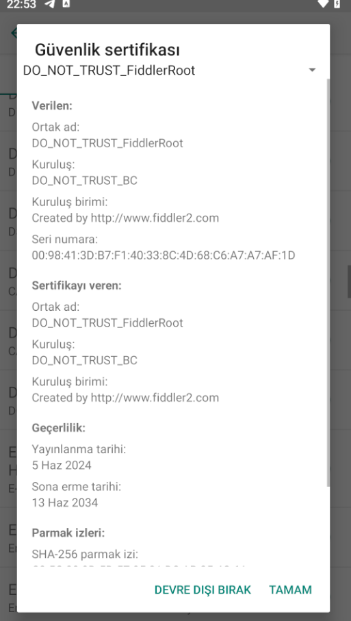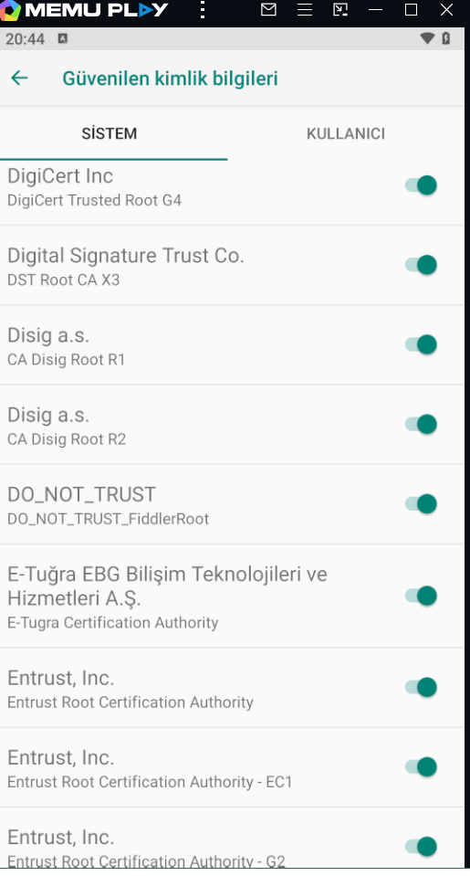 Fiddler classic was working smoothly in the Memu play emulator application, but then the emulator crashed. I updated it. Now, the android certificate is in the system section, but Google is giving error that certifica is not trust, it was giving errors, and I was monitoring the https traffic of applications such as Telegram, Twitter, Clubhouse without any problems. While I can download on my own PC and Android, I can't right now. error. However, after closing fiddler, I start the download and open it again, the download continues. I deleted and reinstalled Memu 2 or 3 times and tried again, it still gives the same error. What do you think is the reason? Also, I haven't tried any other 2 or 3 emulators. I get the same error on them too. I have been using it for 1 month without any problems. I'd appreciate it if you could help. Thanks in advance