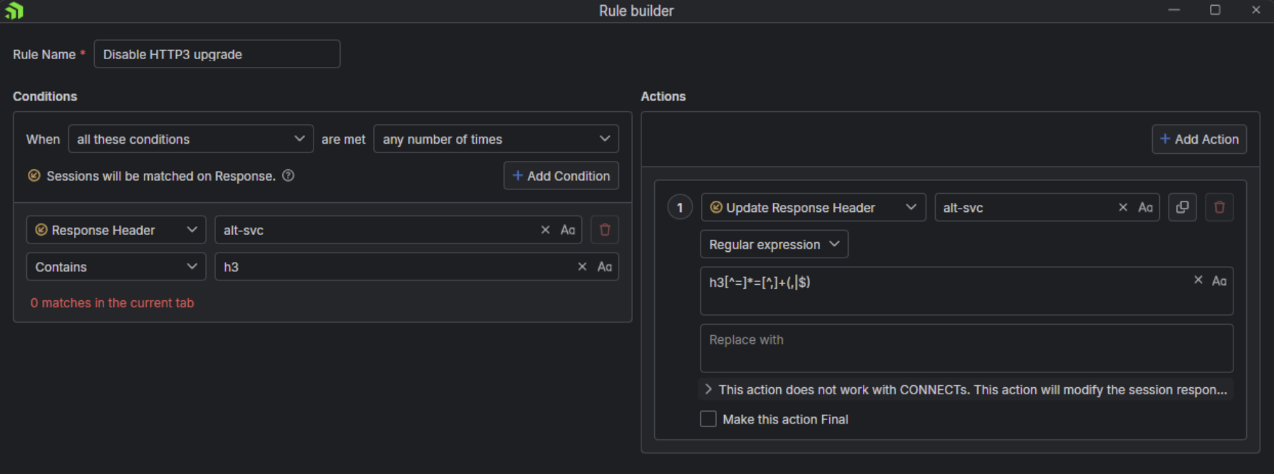 So the Websites no longer get shown in the Traffic Window, just the Connect Tunnels.