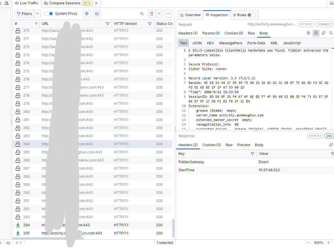 The CONNECT Tunnels in Fiddler Classic indicate that Fiddler is capturing traffic from the targeted application/endpoints, but the captured traffic is only HTTP and not HTTPS. That usually can suggest that you have a problem with the Fiddler certificate authority file. For example, the FIddler CA is not installed (on the emulator), or it is installed, but you are trying to capture traffic from an Android application that does not respect user-installed CAs.