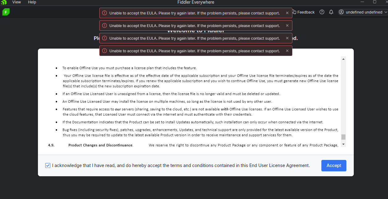I'm running on a Windows 11 pro, it's my personal computer there are no network blockers, I can ping the endpoints mentioned in this answer: https://www.telerik.com/forums/unable-to-accept-the-eula-please-try-again-later-if-the-problem-persists-please-contact-support
