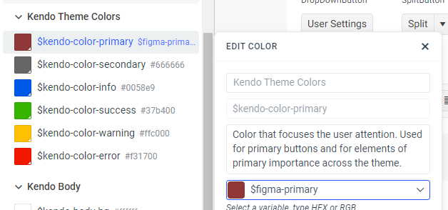 If not with Kendo components, closest possible option or idea? - Will the new plugin and addition to Themebuilder Pro support custom styles and tokens as well? For example, we use your components UI Kit, we restyle what we need, but for a title on the dashboard we are missing a style...we create a new color called $title-color, we create a new style called title-style...how can we export that together with Kendo theme changes?