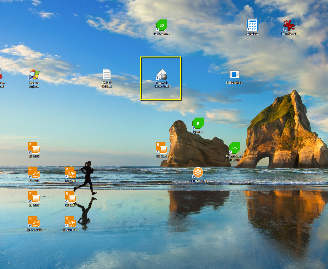 - Run the tool from the desktop icon (check the screenshot TestMailServerIcon.png) or from the Windows Taskbar Search tool - RunTestMailServer.png screenshot.