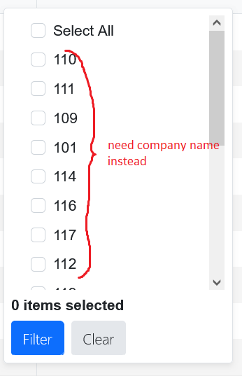 Is there any way to show the CompanyName instead of the CompanyId with the checkbox filter?
