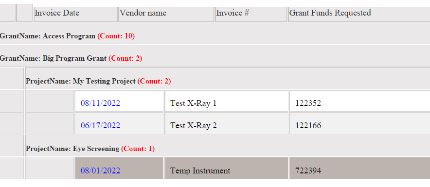 (1) Grant Name (want to count how many projects under the grant)