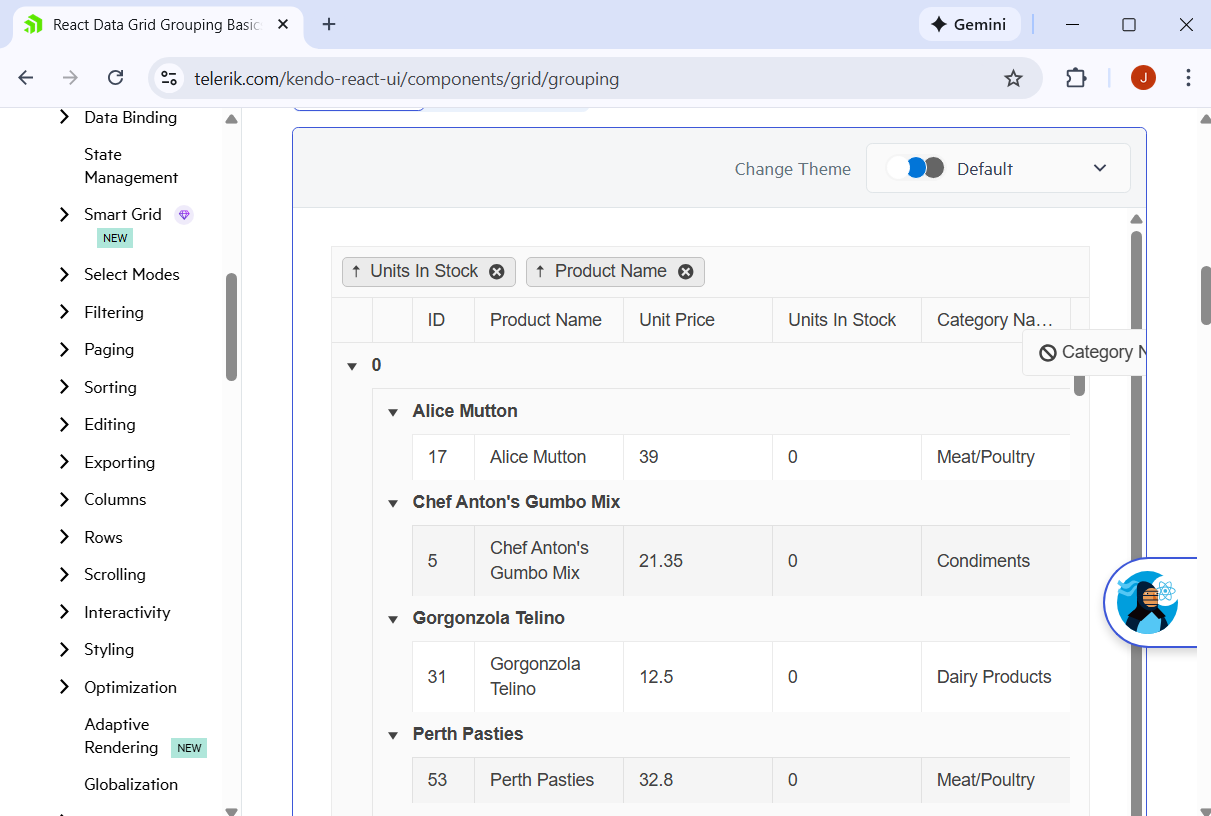To reproduce, use this example - https://www.telerik.com/kendo-react-ui/components/grid/grouping, resize the browser to a smaller size so that "Category Name" column title fill up the entire column width. Then try to drag "Category Name" column.