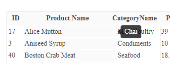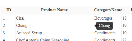 <Grid key={gridState.sort.map((s) => s.field + s.dir).join('_')} style={{ height: '400px' }} data={process( products.map((item) => ({ ...item, selected: item.ProductID === gridSelection.ProductID, })), gridState )} {...gridState} onDataStateChange={handleGridDataStateChange} sortable={true} pageable={true} selectedField="selected" > <GridColumn field="ProductID" title="ID" width="40px" /> <GridColumn field="ProductName" title="Product Name" width="250px" cell={ProductNameCell} headerCell={ProductNameHeader} /> <GridColumn field="Category.CategoryName" title="CategoryName" /> <GridColumn field="UnitPrice" title="Price" width="80px" /> <GridColumn field="UnitsInStock" title="In stock" width="80px" /> </Grid>Please give this a try and let us know if further assistance is required.