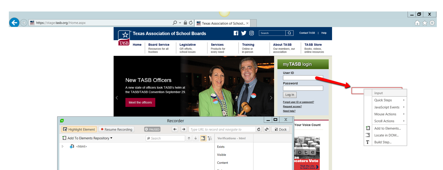 elements. In the attached screenshot , I was trying to add quick steps to UserID input field and as you see the highlighted element is not at the cursor and when I move cursor to add quicksteps I loose the highlighted element.