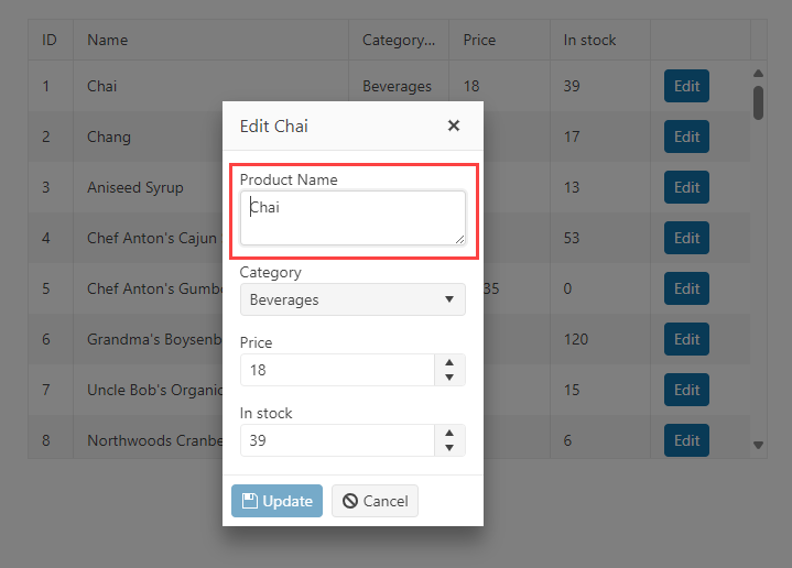 <Field name={"ProductName"} component={TextAreaField} label={"Product Name"} />