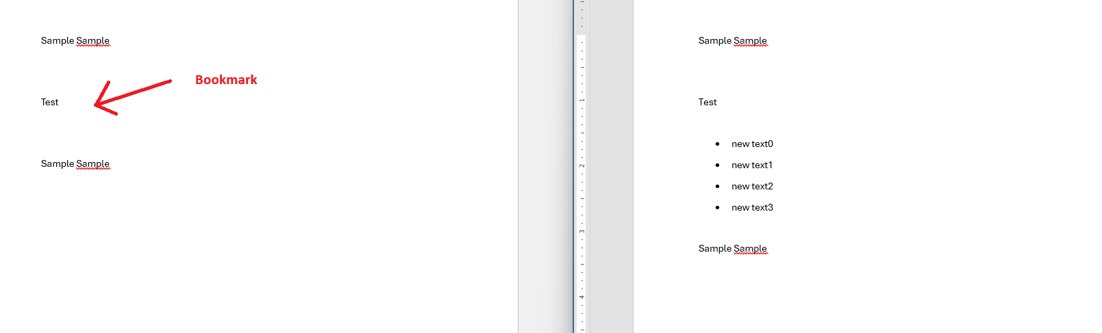 [Solved] How to add a list to an existing named bookmark in a template