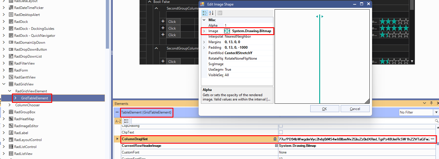 RadImageShape dragHint = new RadImageShape(); dragHint.SvgImage = RadSvgImage.FromByteArray( Resources.black_line); this.radTaskBoard1.TaskBoardElement.ItemDragHint = dragHint;