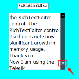 Hello everyone, I have successfully changed the scroll bar color of the RadRichTextEditor control. However, no matter how I try to set and modify the color of the button on the scrollbar, it remains white. How can I achieve this? Thank you.