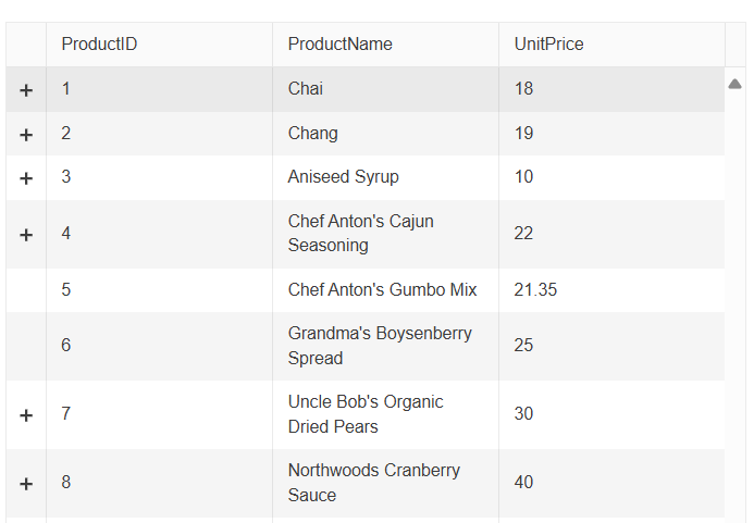 Using the Angular grid with a detail template for master-detail functionality, how can I disable the functionality and hide the plus sign on rows which have no child data to display? I found a feature request from 2016 here: https://github.com/telerik/kendo-angular/issues/106 , but it does not appear to have been implemented as described given errors I get in the console.