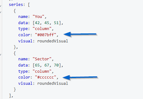 For the colors, they are what you had in your dojo link. If you want to change them, change them: