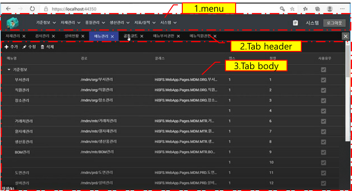 Hello! I want to create a Blazor WebAssembly application with the following program structure: When clicking on menu items, I'd like tabs to be generated with the displayed Page Name and a close button in the tab header, and the page content displayed in the tab body. How should I structure this?