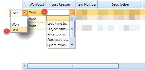 (1) User clicks on a cell and selects "Lost" from a list