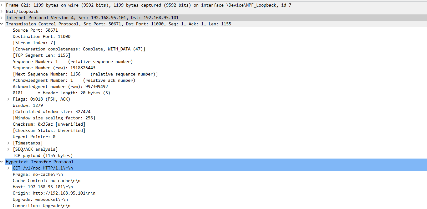 GET http://localhost/v1/rpc HTTP/1.1 Pragma: no-cache Cache-Control: no-cache Host: localhost Origin: http://localhost Upgrade: websocket Connection: Upgrade <snip>