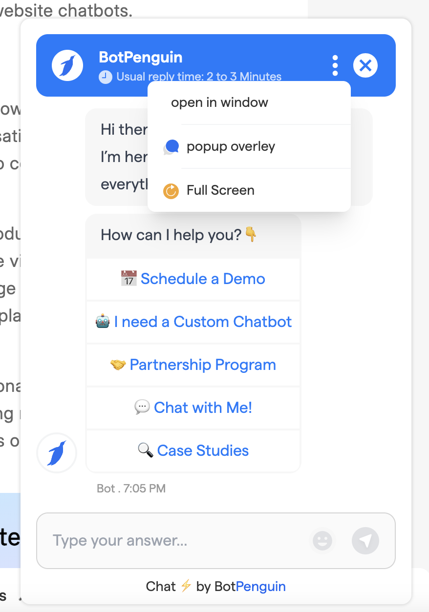 - The window should be able to expand to full screen by clicking a small icon on the chat box.