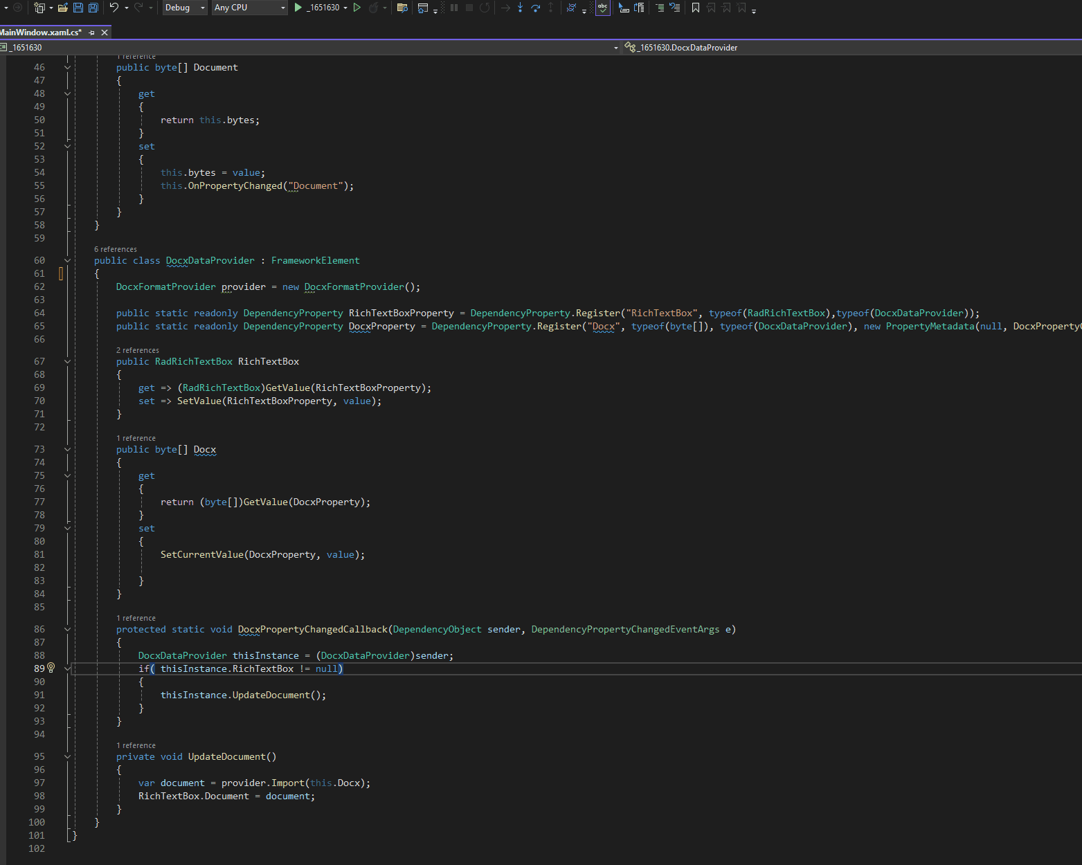 Error CS1061 'DocxDataProvider' does not contain a definition for 'RichTextBox' and no accessible extension method 'RichTextBox' accepting a first argument of type 'DocxDataProvider' could be found (are you missing a using directive or an assembly reference?)