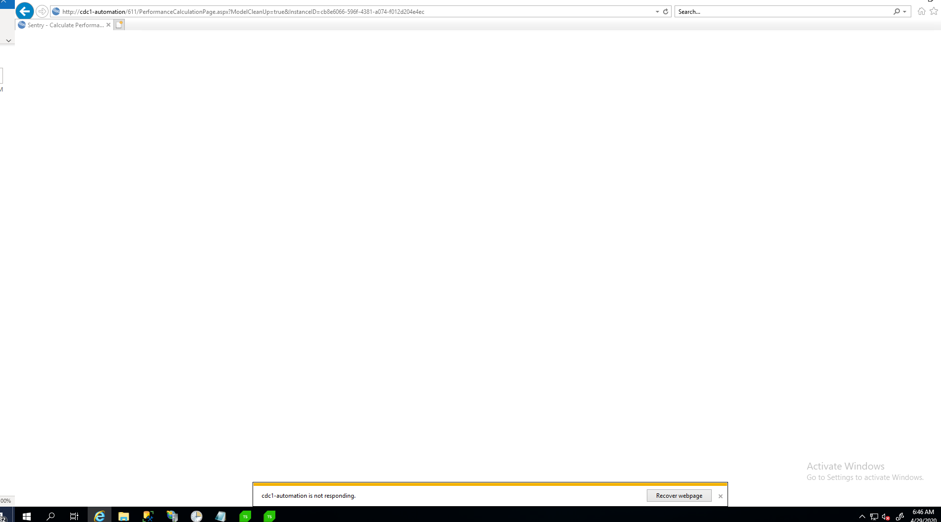 Internet explorer (IE) has stopped working during test execution throws error: ***** is not responding recover webpage.