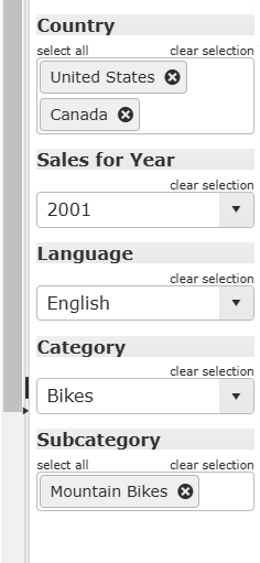 The report parameter is a dropdown control that is implemented by default with our Kendo UI controls and applies all their styles and default settings. However, these default dropdowns can be hidden and replaced with custom controls on your application that gather the information about the filtering of the report and later send it through the ReportSource.