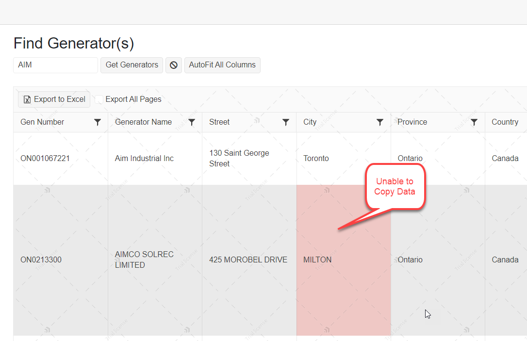 In general, it is possible to Copy the Data from the Grid cells.