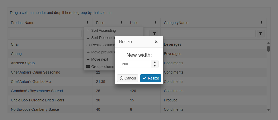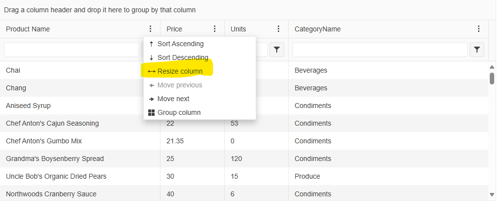 [Solved] Is resize column menu item is added in kendo angular grid version 6.1.3? If yes, then please share me the reference to implement the column resize in column menu options.