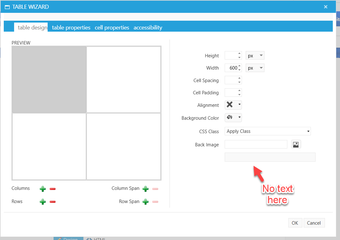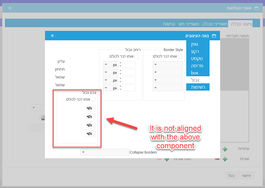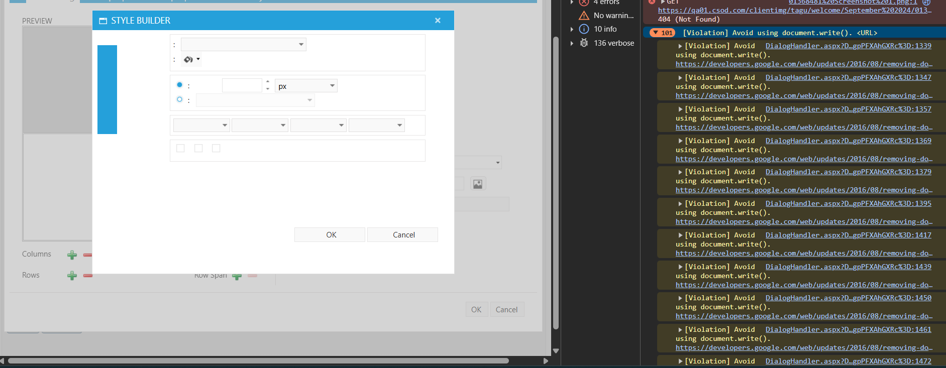I can see the following error while opening the table style builder window. Can you help me with this?