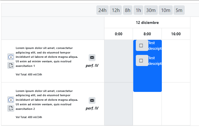 Hi, I need the SchedulerResourceGroupHeaderTemplate to have a certain size to fit a long description of the appointment and some buttons for actions. I am using the TelerikScheduler component to represent when a person should take one or several medications, but when I change the time division from 12h to 8h or lower the position of the event/appointment gets completely out of position.