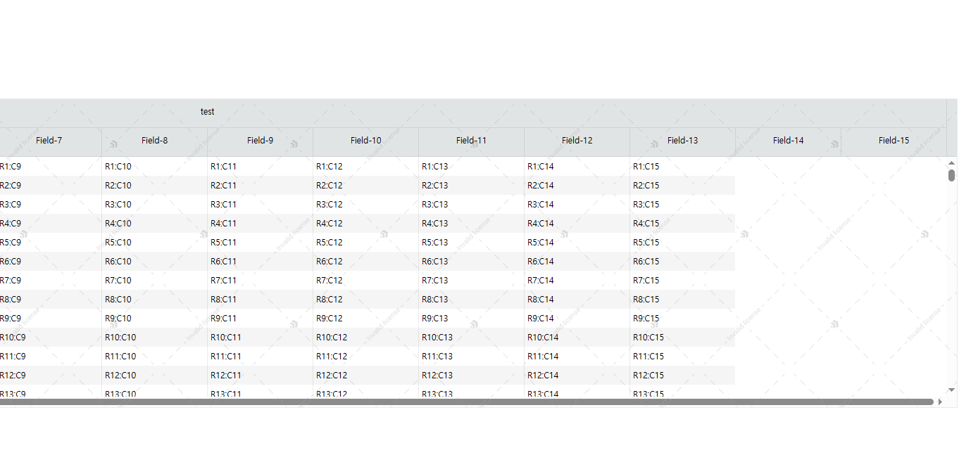 When scrolling horizontally, I noticed that the misalignment occurs especially when passing the second column (Field-3) which uses a multi-level header. At that point, the header and data columns become visibly out of sync.