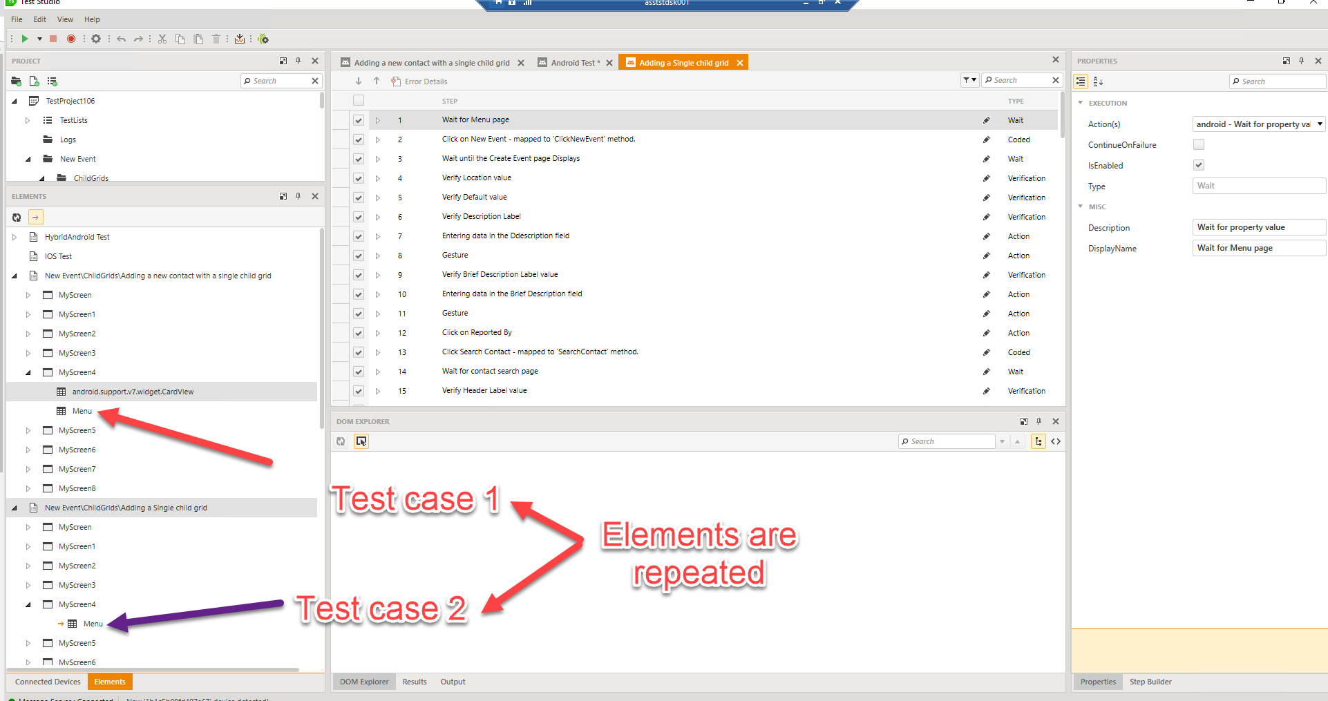 3. How can I reuse the elements in my previous test case? Currently, It seems that it creating a the same element again and again in every test case. please look in to the attached pic. This is a really big issue because in case if the developer changes the element information, I will have to go in to each test cases and update it.