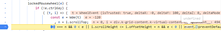 event is WheelEvent here, which is good. However, when I do same thing in my application (try to scroll over locked column), I get an error because event is undefined in the exact same place: