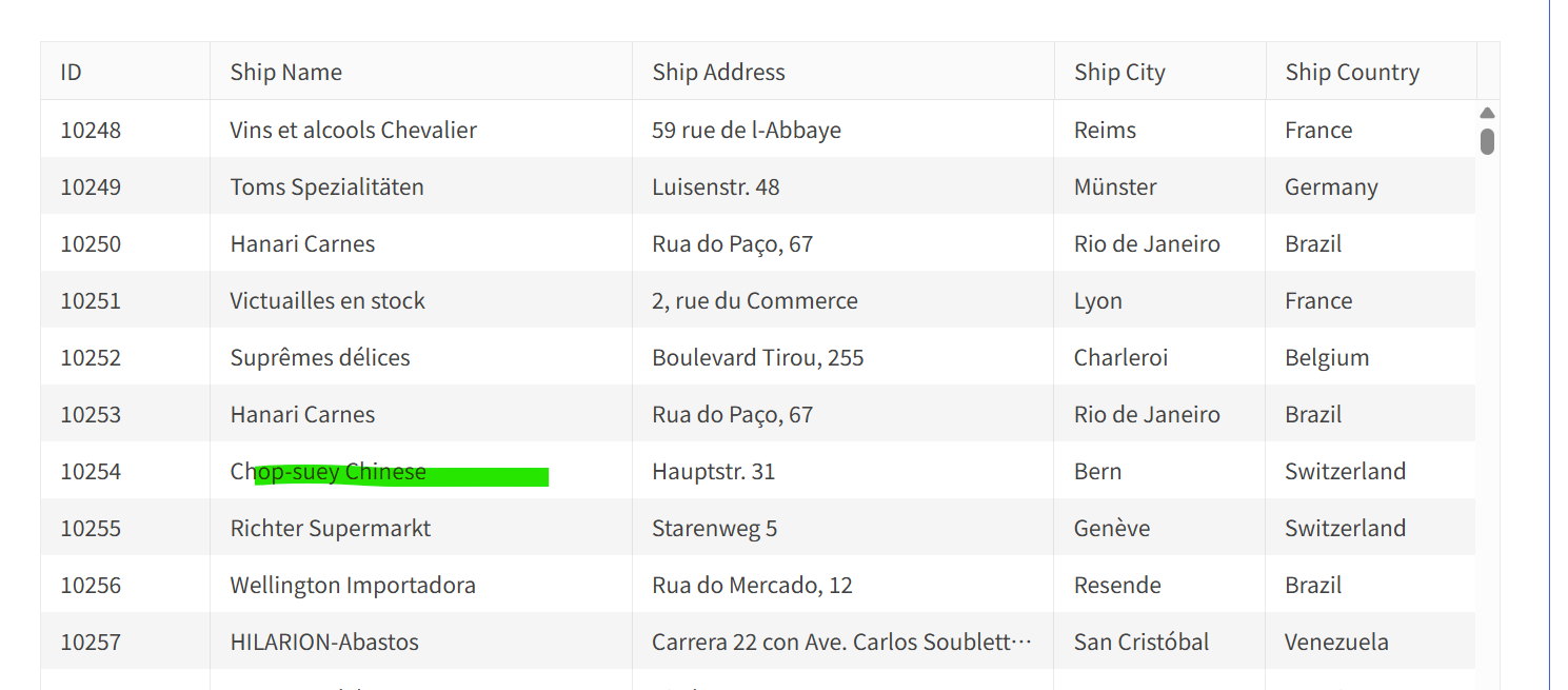 for example ,i want to scroll the table making the data which id is 10254 visiable,