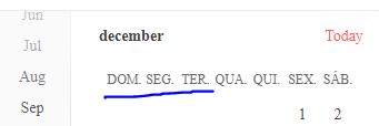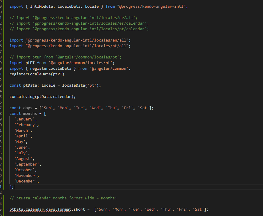 We have a requirement, where we are using supporting internationalization for only date, numbers and currency. We do not want the calendar months to be displayed in local language. For example, when we set the LOCALE_ID, useValue: 'pt-PT', we don't want the calendar months to be displayed in Portugues. We want it to be SU, MO etc. Is this achievable?
