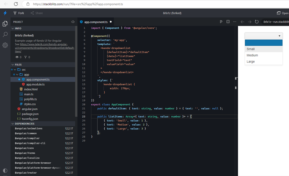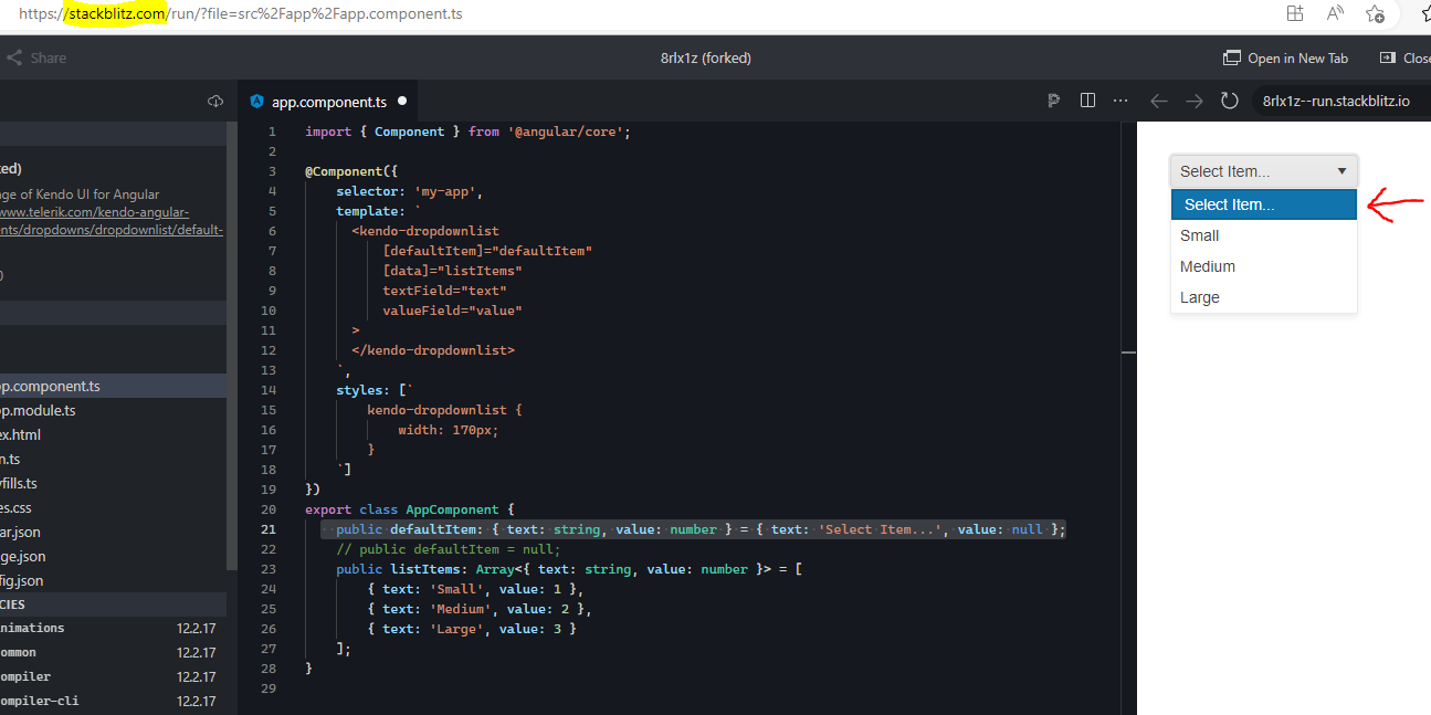 Default Item - DropDownList - Kendo UI for Angular (telerik.com)