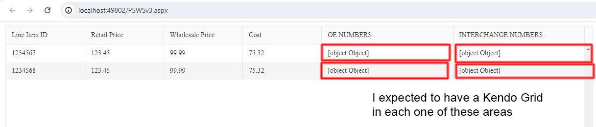 I would like to know if it's possible to declare a Kendo grid column to display a Kendo grid within it. If so, how can I do this?