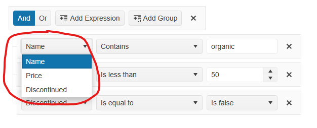 Thank you for the screenshot and clarification. After further investigation, the Filter component currently does not provide a mechanism to customize the Fields DropDownList, for example, the first or second one. I can recommend submitting a feature request in our feedback portal for this functionality where new ideas are constantly being evaluated and the most popular ones are included in future releases: