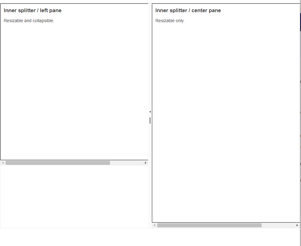 However, if once resized by the splitter bar, the pane width is not longer adjusted after browser resize events. Instead, the page shows a single scrollbar for the whole splitter.