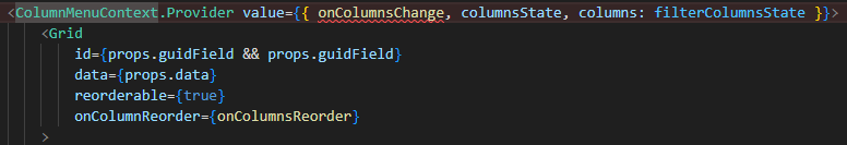Because GridColumnProps doesn't contain an order index parameter, on our 'onColumnsReorder' event, I take the the GridColumnProps lists and order them based on the orderIndex of the columns passed to the events. This works as expected for when I only reorder the columns or I only toggle column visibility. However, if I reorder the columns and then toggle visibility without refreshing, I lose the original column order. I have verified multiple times in the console that the order being saved to session storage is correct. When I refresh after the column order is lost, it then loads the columns with the correct order.