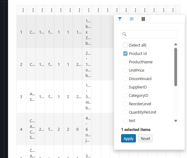 When I use React Data Grid Component & Column Menu - KendoReact Docs & Demos (telerik.com), I set some columns,