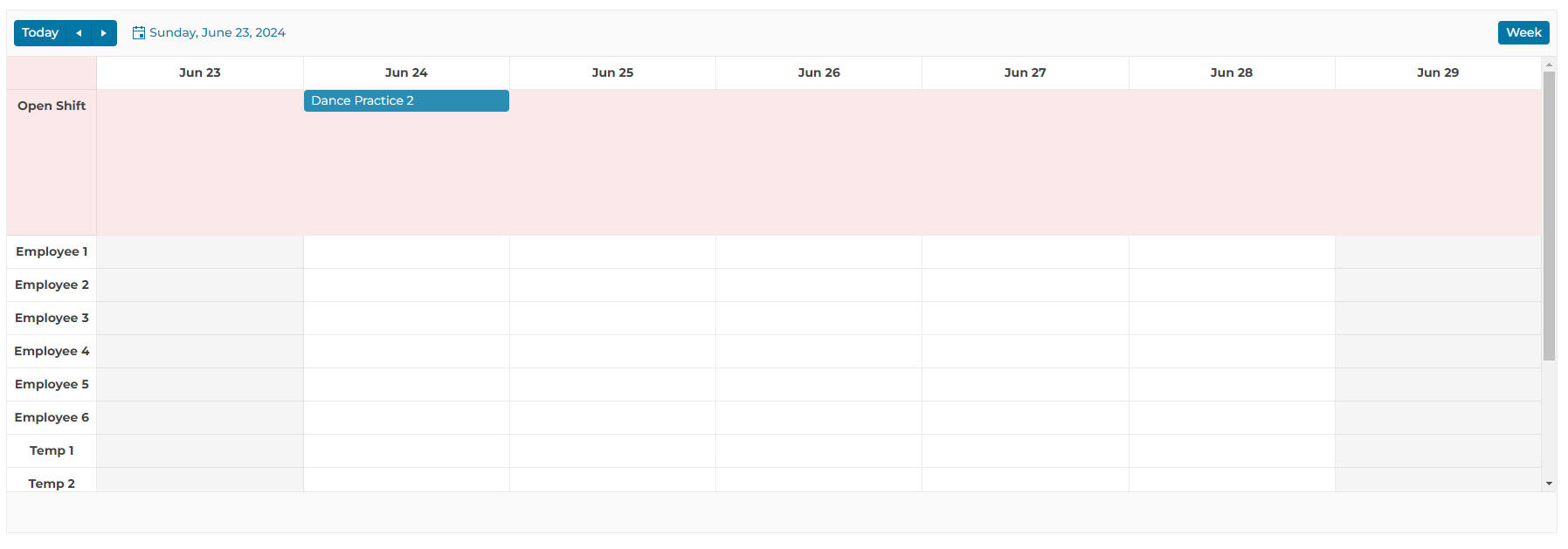 We got close to implementing these features with the WeekView, but our rows need to correspond to employees and not hours, and we add the employee data as resources. Every time we add resources to the Scheduler with the WeekView it adds them as an additional row column instead of replacing the hours column. We also tried creating our own custom slot to have the SchedulerItems remain sticky when scrolling, but it still wouldn't remain in the sticky row.