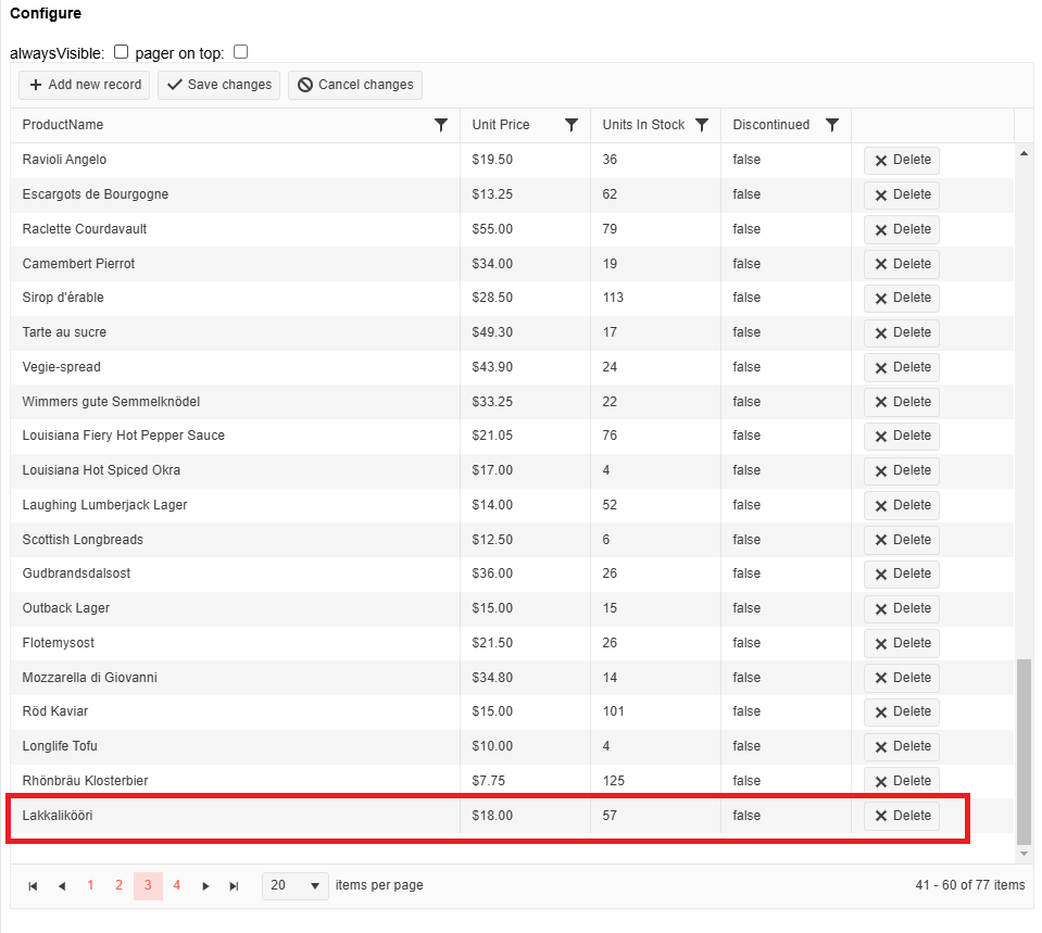 As I can not scroll below this point, I clicked on the Page 4 in the Pager and i was able to see the last row see below screenshot :
