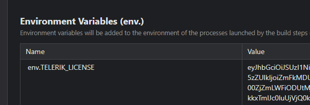 Unfortunately, Telerik documentation was not very clear on what needed to be done. For those using TeamCity I recommend you do the TELERIK_LICENSE approach using text value.