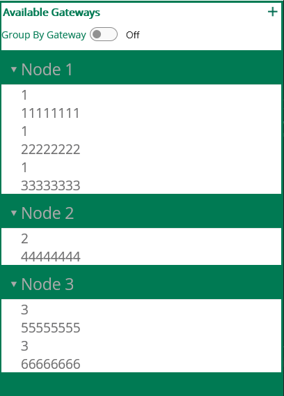 When the Group By Gateway switch is on the list is grouped as shown above. When the switch is off it shows the list without the group headers as shown below....
