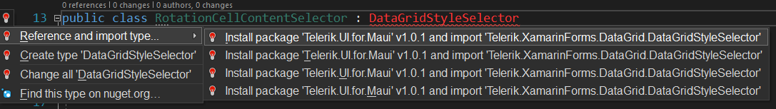 but none of those options do anything. I have the Telerik Maui nuget installed in the class library.