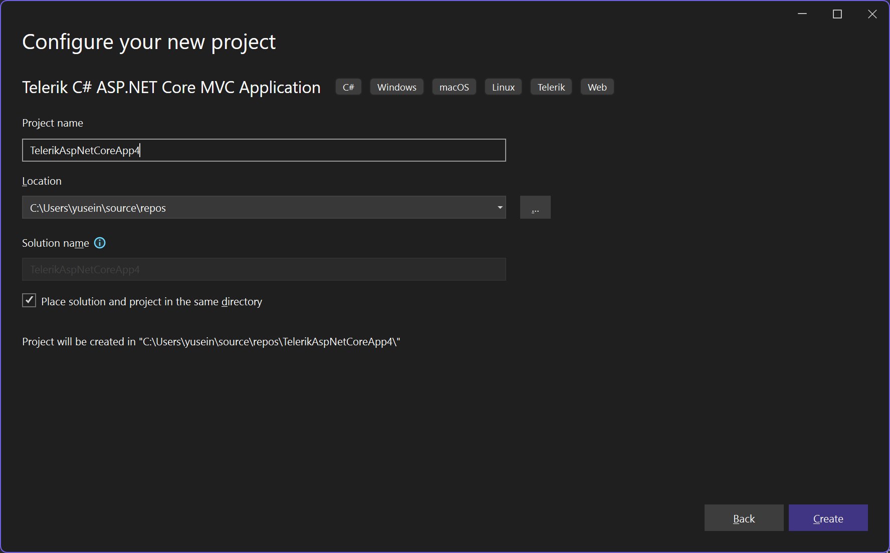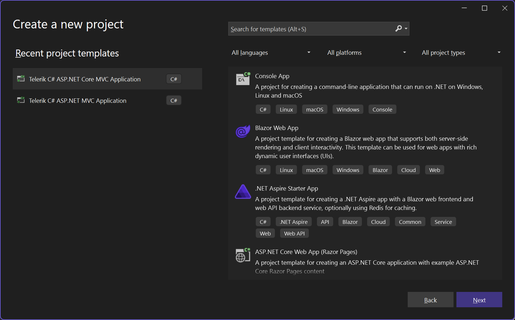 1. Create a new Telerik UI for ASP.NET Core project from the Visual Studio Templates: