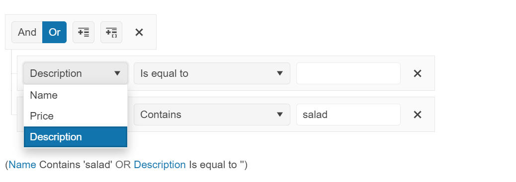 In our project, there is a requirement to have a search select in place of the select ("Description" in the below example) as we have multiple columns.