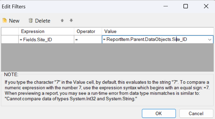 I have installed the trial report. I tried with standalone report designer for a nested report. I need to filter the table data based on the parent Id of report detail section. Picture is given below.